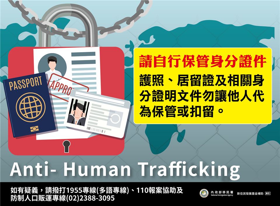 其他資訊 【宣導】防制人口販運案件認知海報 公佈日期: 2025/12/25 | 修改日期: 2025/12/25 | 瀏覽人次: 76人 | 聯絡電話: 劉雅芳 分機8882779 【宣導】防制人口販運案件認知海報