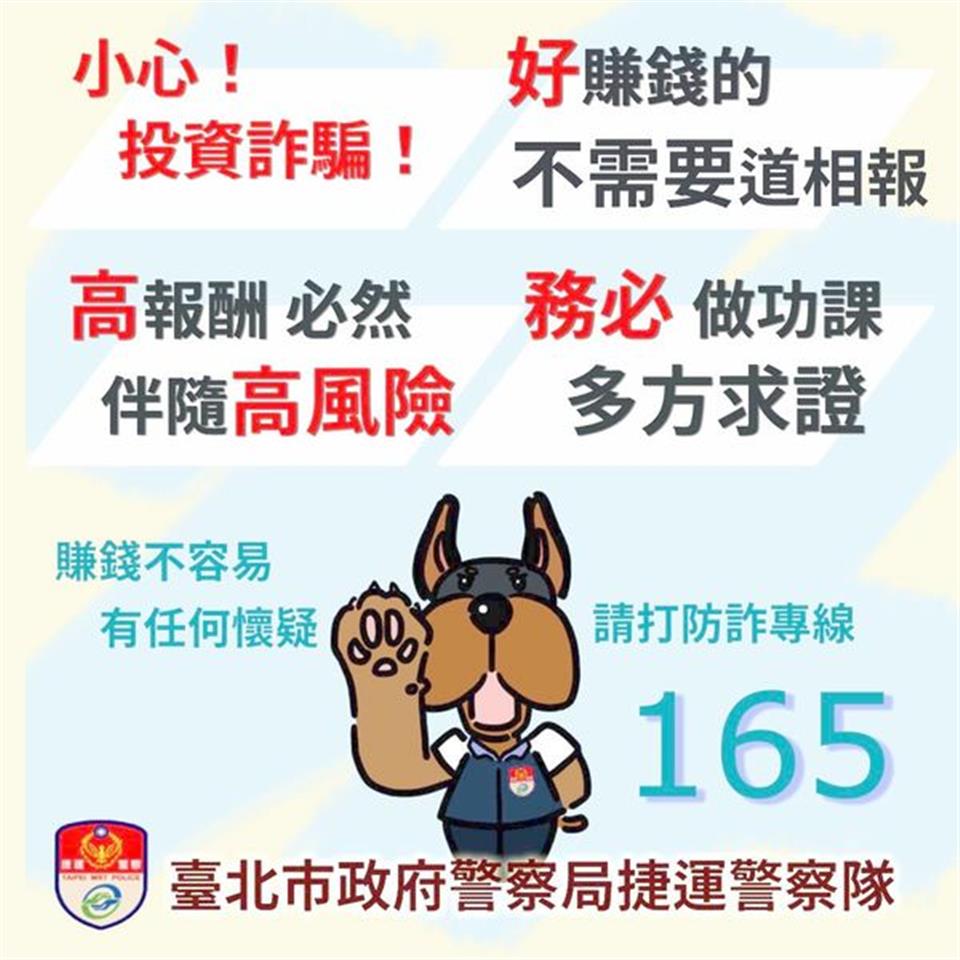 最新訊息 詐騙集團會「假冒名人投資群組」吸引民眾加入, 還會「安插暗樁附和」,營造投資群組保證賺錢的假象! 公佈日期: 2024/11/18 | 修改日期: 2024/11/18 | 瀏覽人次: 141人 | 聯絡電話: 鐘菁霞 分機7554321#15 詐騙集團會「假冒名人投資群組」吸引民眾加入, 還會「安插暗樁附和」,營造投資群組保證賺錢的假象! 請記得: 標榜「穩賺不賠、保證獲利、飆股、零風險」是詐騙! 高獲利必定伴隨高風險!投資一定有賺有賠! 慎選投資管道! 刑事警察局關心您 https://youtu.be/3z-ta3GONh8?si=zdSqKXOobLBlofvn