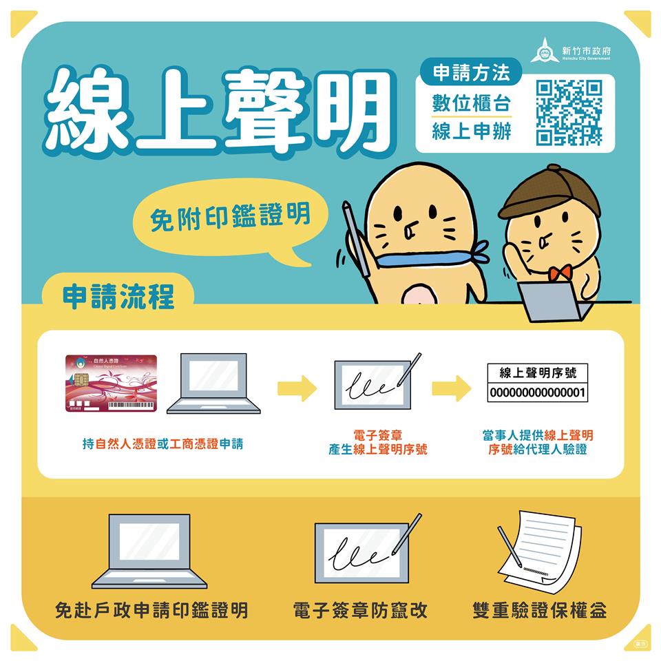 最新訊息 民眾申辦地政業務使用線上聲明及各項當事人免親自到場措施,可替代申辦印鑑證明! 公佈日期: 2026/04/08 | 修改日期: 2026/04/08 | 瀏覽人次: 25人 | 聯絡電話: 鐘菁霞 分機7554321#15 依據土地登記規則第41條規定,申請土地登記,當事人免親自到場之替代措施,計有線上聲明措施、設置土地登記印鑑等15項替代措施。為減少民眾向戶政事務所申請印鑑證明辦理地政業務,請多利用線上聲明、設置土地登記印鑑等替代措施申辦土地登記,減省您奔波往返戶政事務所申辦印鑑證明之不便。