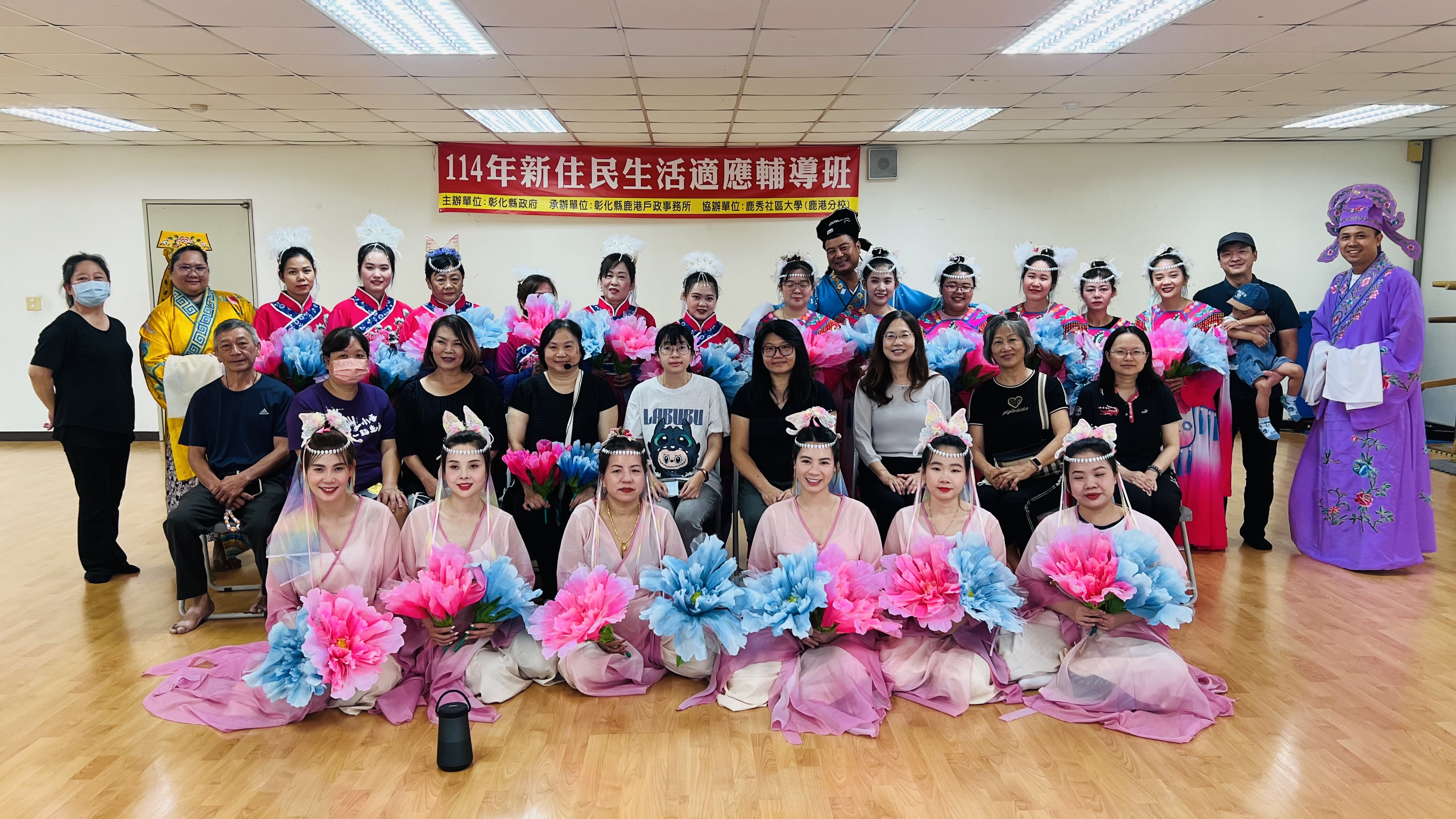 最新訊息 鹿港戶政事務所「新住民生活適應輔導班」圓滿完成 公佈日期: 2025/09/18 | 修改日期: 2025/09/18 | 瀏覽人次: 21人 | 聯絡電話: 許進雄 7773744分機15 為落實新住民服務照顧,鹿港戶政事務所於 8 月 18 日至 9 月 10 日,在鹿秀社區大學辦理「新住民生活適應輔導班」,學員國籍分別來自越南、印尼及菲律賓。課程以強化新住民在臺適應能力為核心,結合基本生活知能與在地人文特色,協助新住民更快融入台灣生活,活動已於日前圓滿結束。課程特別邀請戲劇指導鐘麗珠老師,以鹿港古早榮景為藍本,帶領學員共同演繹歌仔戲,透過角色扮演、舞蹈排練與舞台展演,不僅增進語言與文化理解,更展現出跨文化交流的成果。成果展演當天,學員勇敢登台演出,重現鹿港在地歷史氛圍,深深感動了觀眾與家屬。鹿港戶政事務所表示,本次活動不僅協助新住民建立良好家庭互動與生活適應能力,更成功搭起文化交流與理解的橋梁。結合鹿港深厚的戲曲底蘊與地方特色,藉由藝術展演深化新住民與社區的連結,展現鹿港多元文化共融的城市特色。
